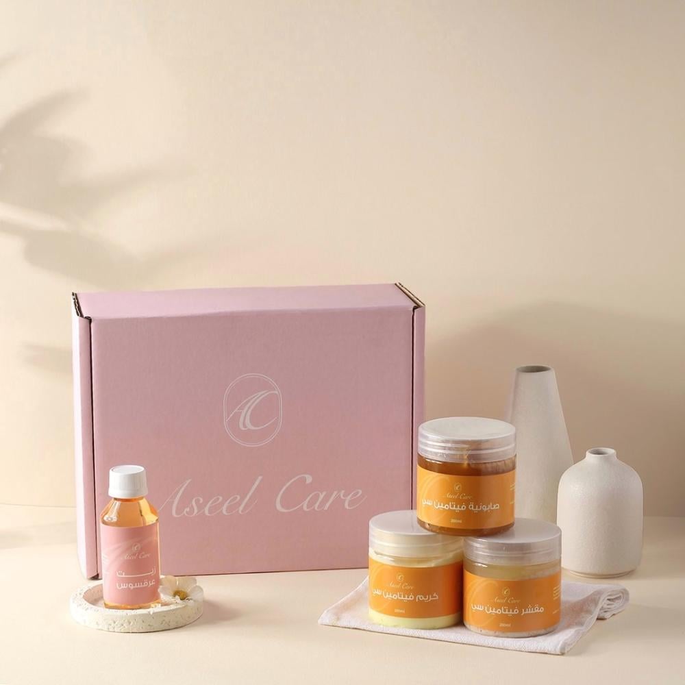 استمتعي بتجربة تفتيح شاملة مع مجموعة فيتامين سي الاصلي من أسيل كير. يحتوي هذا الباكينج على تركيبة متقدمة من مضادات الأكسدة القوية التي تحيد الجذور الحرة المسببة لتلف البشرة وتزيل بقع الشمس. تساعد التركيبة على تقليل ظهور البقع الداكنة، شد البشرة، تفتيحها ومعالجة الخطوط الرفيعة لمنح بشرتك لمعانًا طبيعيًا.