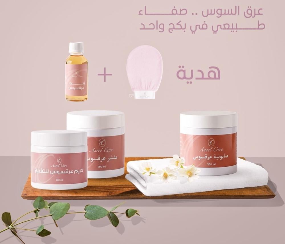 تتكون المجموعة من صابونية العرقسوس للتنظيف العميق والانتعاش وتهيئة البشرة لامتصاص الكريم، وكريم العرقسوس للتفتيح بتركيبة مركزة تعالج التصبغات مع ترطيب عميق، ومقشر العرقسوس اللي يزيل خلايا الجلد الميتة ويساعد البشرة تتجدد بشكل طبيعي.